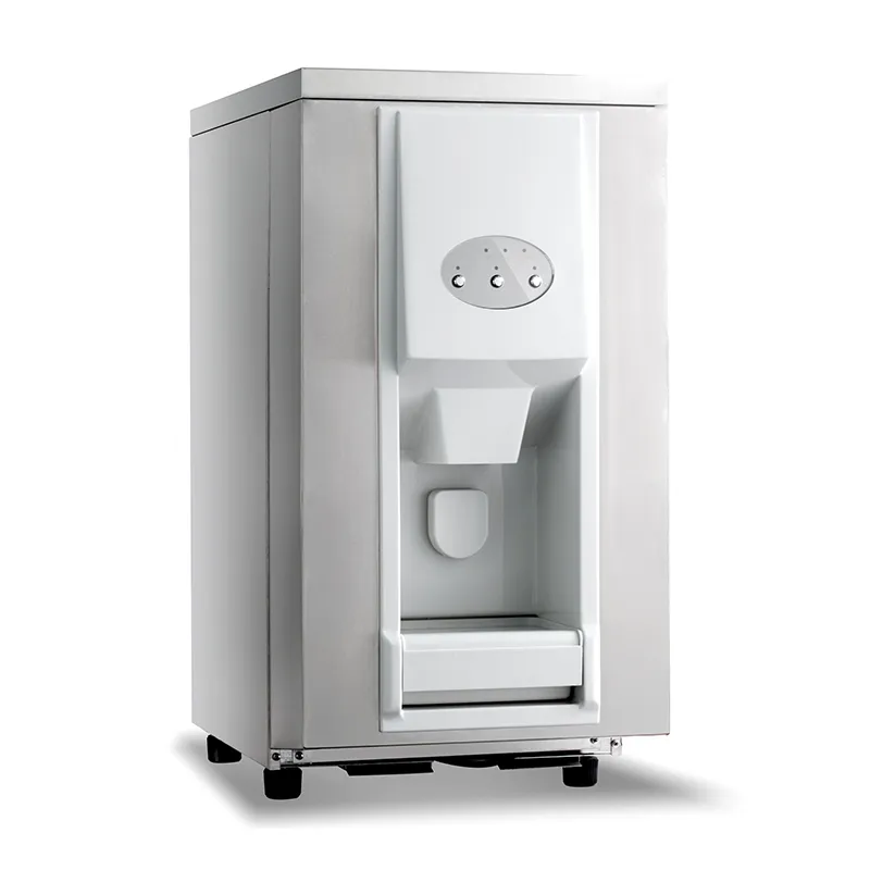 El dispensador automático de hielo es una solución de servicio directo diseñada para cafeterías y restaurantes con espacio limitado. Tiene una capacidad de producción de 25 kg cada 24 horas, cubre las necesidades diarias de bebidas y conservación. Su sistema facilita el acceso al hielo de forma rápida y práctica.